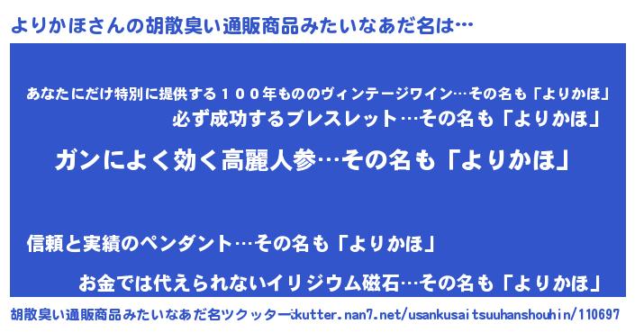| 意味不明あだ名 | 『自称よりかほ』『もやし科よりかほ属』 |