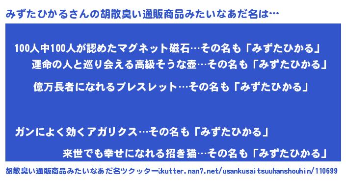 | 男性向けラノベタイトル風あだ名 | 『うちのみずたひかるが世界を掌握している!』 |