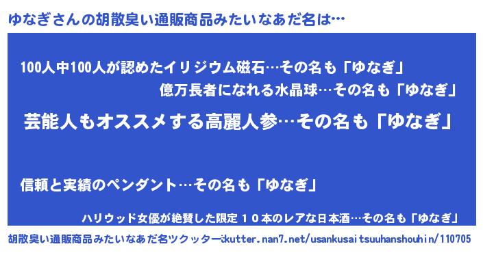 | ヒーロー風カッコイイあだ名 | 『究極戦士ユナギ』『正義の使者ゆなぎ』 |