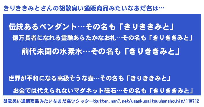 | ヘコむあだ名 | 『きりききみと(遠い目)』『きりっちょ』 |