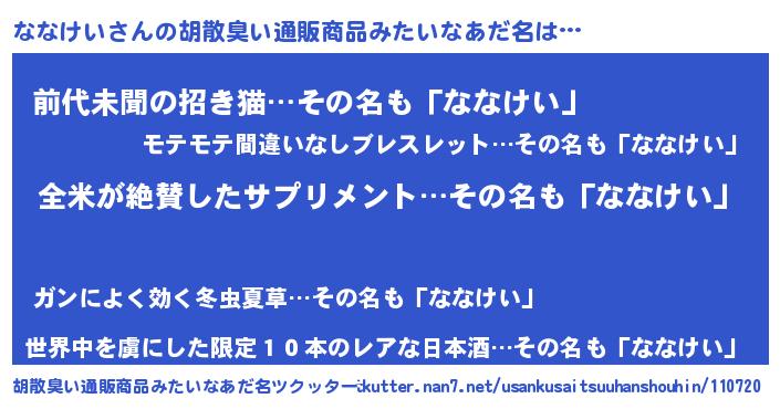 | ヘコむあだ名 | 『ななを』『ななけい(笑)』『牛乳』 |