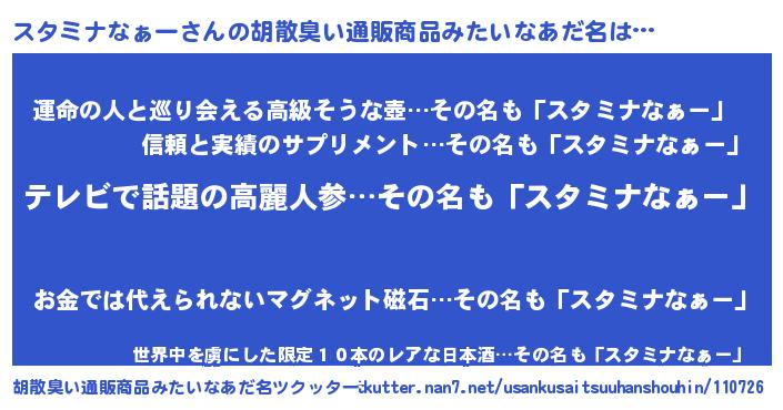 | ヒーロー風カッコイイあだ名 | 『サイバー戦士スタミナナァー』 |