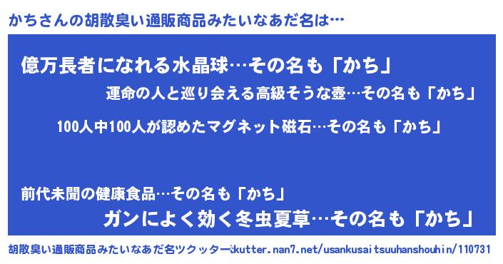 | 欧米人風あだ名 | 『ダニエルかち』『マイケルかち』 |