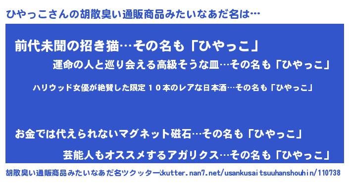 | 意味不明あだ名 | 『住所不定無職ひやっこ(68歳)』 |