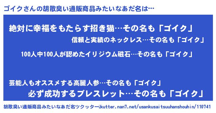 | ヘコむあだ名 | 『ゴイク(笑)』『ゴイふぇ~』 |