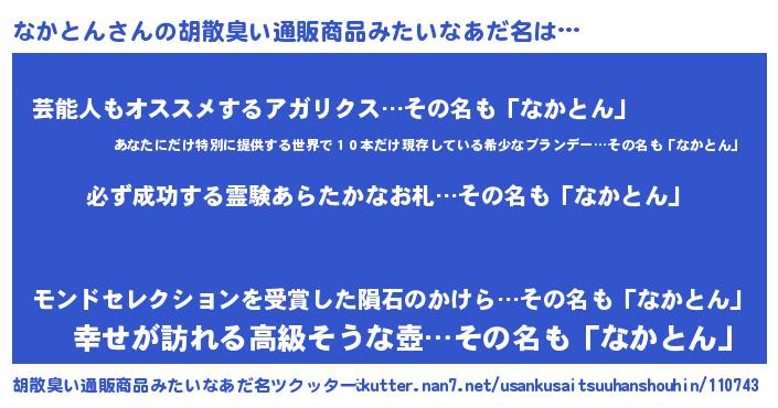 | 伝説のあだ名 | 『伝説のスナイパーなかとん』 |