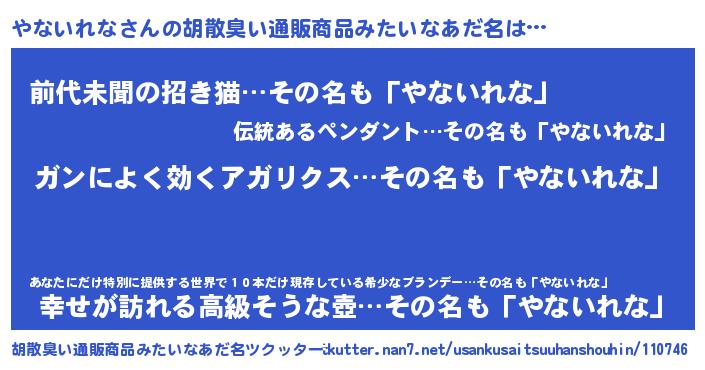 | ヘコむあだ名 | 『やないれな(笑)』『酢こんぶ』 |