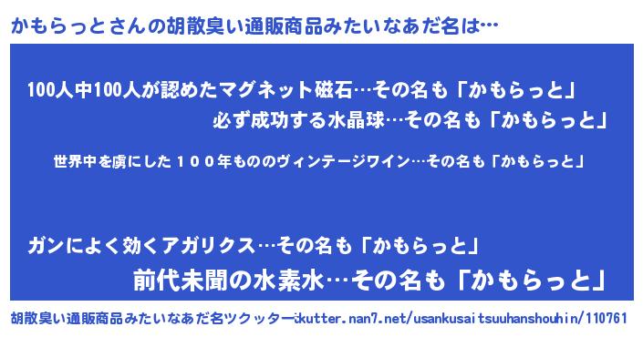 | ヘコむあだ名 | 『かもらっと(笑)』『かもっふぃ~』 |