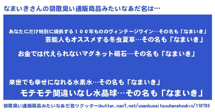 | ヘコむあだ名 | 『なまふぇ~』『なまいき(小並感)』 |