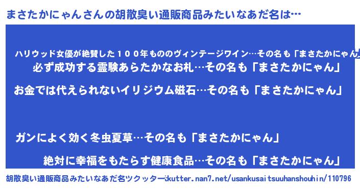 | 意味不明あだ名 | 『眠気覚ましガムまさたかにゃん味』 |