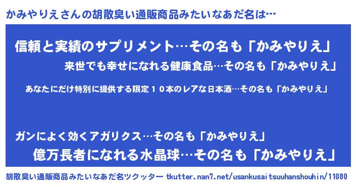 | 意味不明あだ名 | 『住所不定無職かみやりえ(39歳)』 |