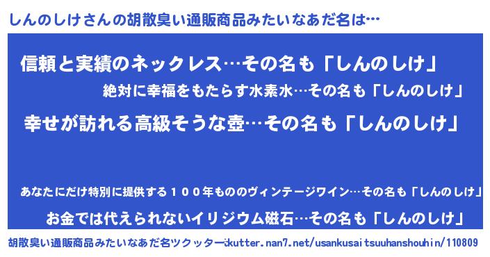 | 意味不明あだ名 | 『しんのしけフォーエバー』 |