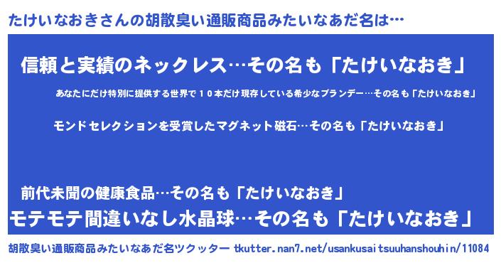| ヘコむあだ名 | 『たけお』『たけふぇ~』『牛乳』 |