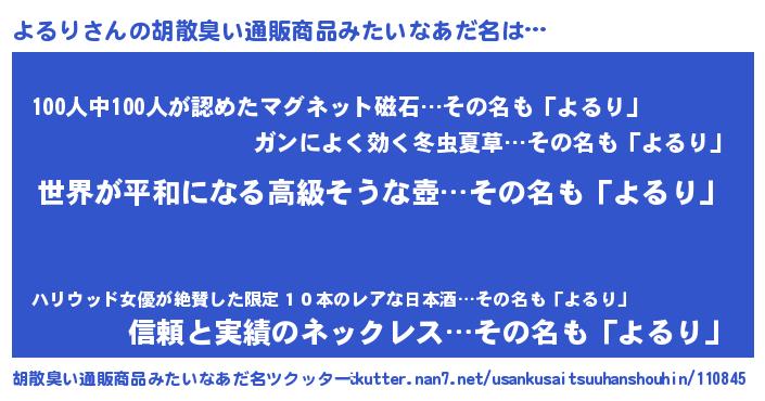 | ヒーロー風カッコイイあだ名 | 『ウルトラよるりマン』『暗黒騎士ヨル』 |