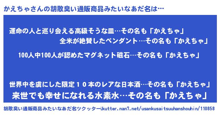 | ヒーロー風カッコイイあだ名 | 『友情の使者かえちゃ』『ネオカエチャ』 |