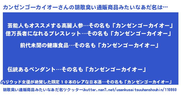 | ヘコむあだ名 | 『カンゼンゴーカイオー(爆)』『カンにゅー』 |