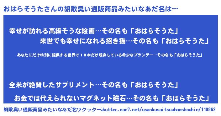 | 男性向けラノベタイトル風あだ名 | 『この素晴らしい世界におはらそうたを!』 |