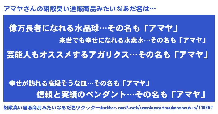 | ヘコむあだ名 | 『アマにゅー』『アマっ子』『豆乳』 |