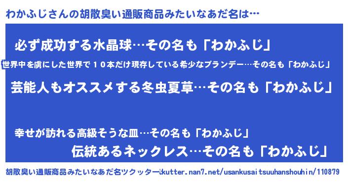 | 意味不明あだ名 | 『自称わかふじ』『ペロリンわかふじ』 |