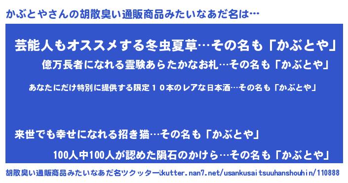 | 意味不明あだ名 | 『ヨモギ科かぶとや属』『自称かぶとや』 |
