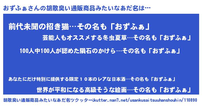| 男性向けラノベタイトル風あだ名 | 『おまえをオタクにしてやるから、俺をおずふぁにしてくれ! 』 |