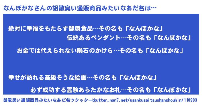 | ヘコむあだ名 | 『なんぼかな(震え声)』『なんにー』 |