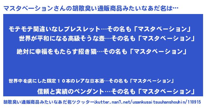 | ヘコむあだ名 | 『マスタベーション(笑)』『マスにゅー』 |