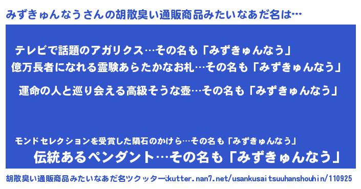 | ファンタジー風あだ名 | 『エターナルミズキュンナウー』 |