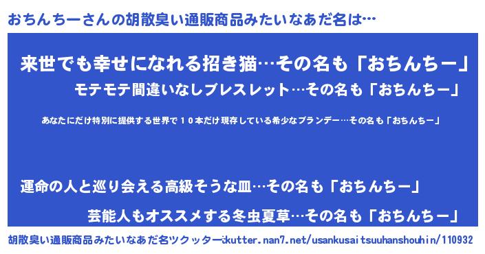 | ヒーロー風カッコイイあだ名 | 『仮面オチダー』『ネオオチンチー』 |