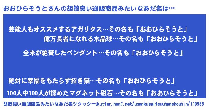 | 意味不明あだ名 | 『とにかく怪しいおおひらそうと』 |
