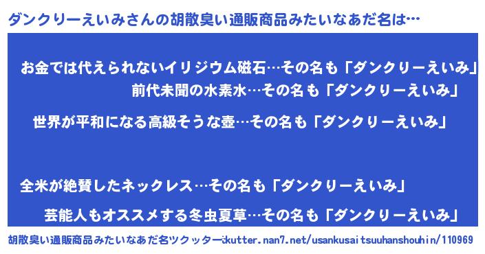 | 欧米人風あだ名 | 『ダンクりーえいみクリステル』 |