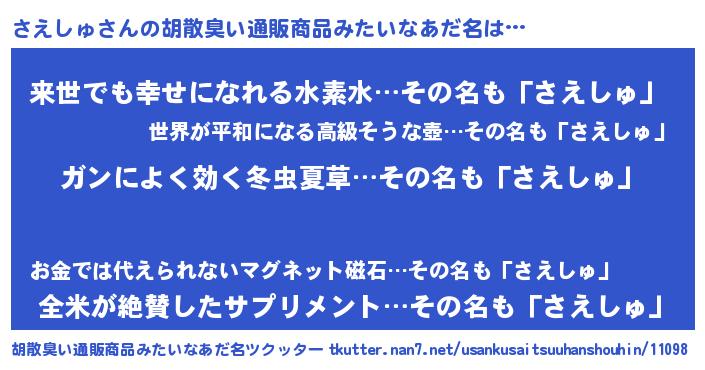 | 意味不明あだ名 | 『自称さえしゅ』『永久保存さえしゅ』 |