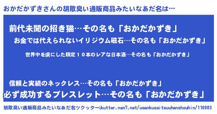おかだかずきさんの胡散臭い通販商品みたいなあだ名をツクッター!