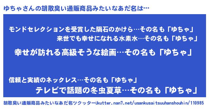 | 意味不明あだ名 | 『ゆちゃフォーエバー』『自称ゆちゃ』 |