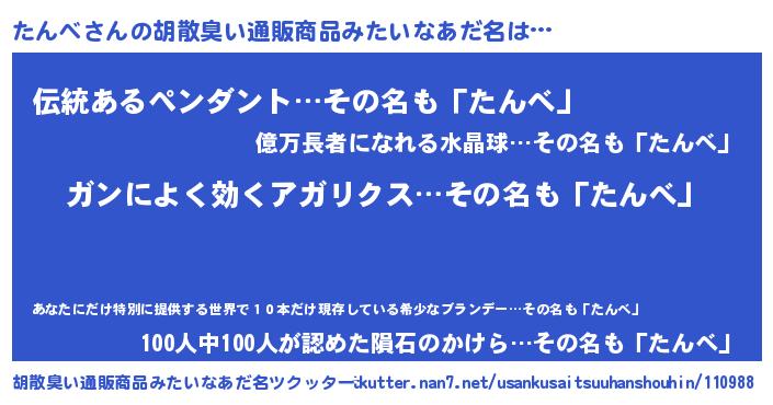 | 意味不明あだ名 | 『自称たんべ』『なめこ科たんべ属』 |