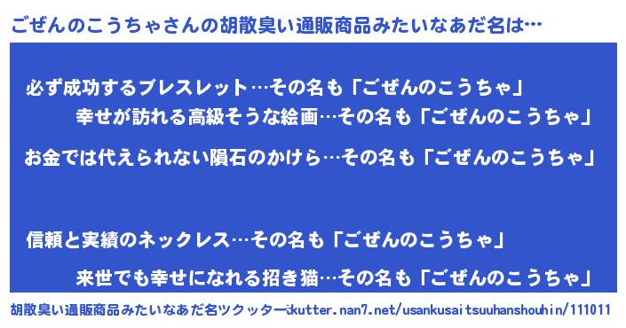 | ヘコむあだ名 | 『ごぜっふぃ~』『ごぜんのこうちゃ(笑)』 |