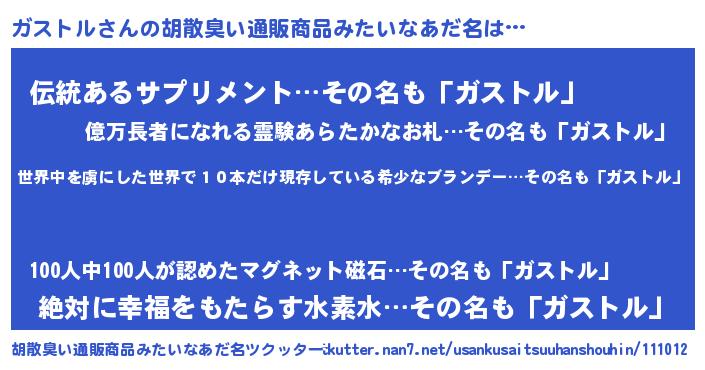| ヘコむあだ名 | 『ガスっちょ』『ガストル(笑)』 |