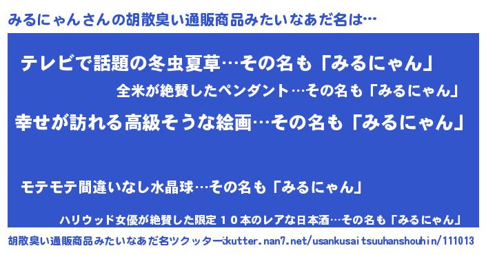 | 意味不明あだ名 | 『みるにゃんフォーエバー』 |