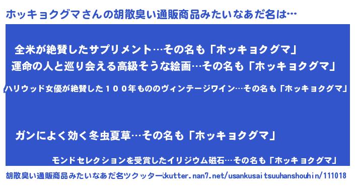| 男性向けラノベタイトル風あだ名 | 『ホッキョクグマスレイヤー』 |