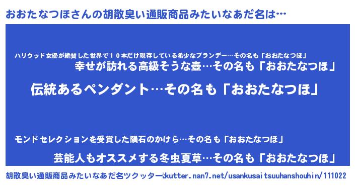 | 意味不明あだ名 | 『とにかく怪しいおおたなつほ』 |