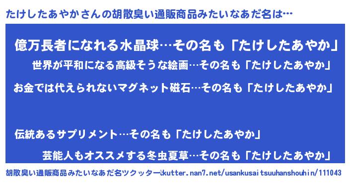 | 意味不明あだ名 | 『眠気覚ましガムたけしたあやか味』 |
