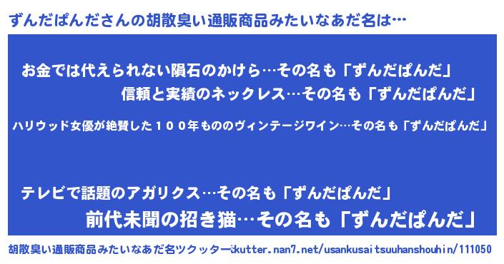 | ヒーロー風カッコイイあだ名 | 『仮面ズンダー』『愛の使者ずんだぱんだ』 |