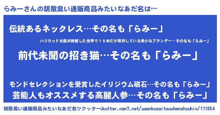 | 意味不明あだ名 | 『永久保存らみー』『自称らみー』 |