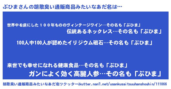 | ヘコむあだ名 | 『ぷひっぺ』『ぷひま(笑)』『つくし』 |