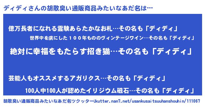 | 意味不明あだ名 | 『永久保存ディディ』『ペロリンディディ』 |