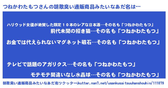 | ヘコむあだ名 | 『つねにー』『つねかわたもつ(笑)』 |