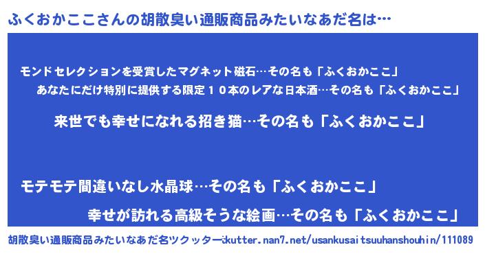 | 意味不明あだ名 | 『永久保存ふくおかここ』 |
