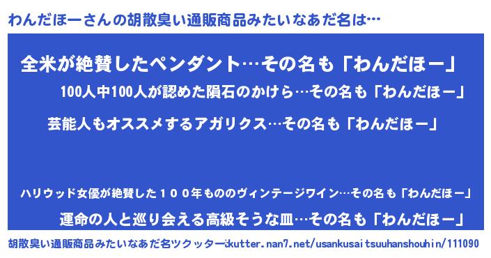 | 意味不明あだ名 | 『自称わんだほー』 |
