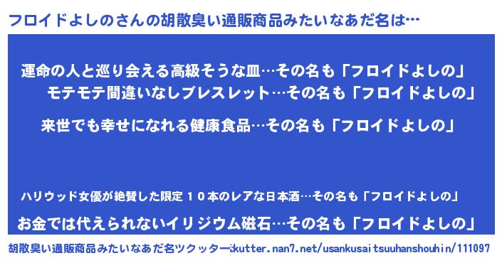 | 女子向けラノベタイトル風あだ名 | 『フロイドよしのの契約王妃』 |