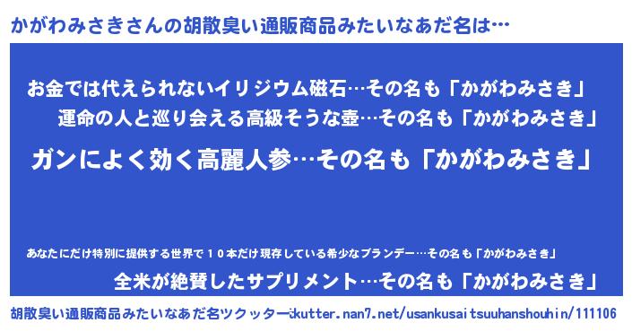 | 男性向けラノベタイトル風あだ名 | 『はたらくかがわみさきさま!』 |